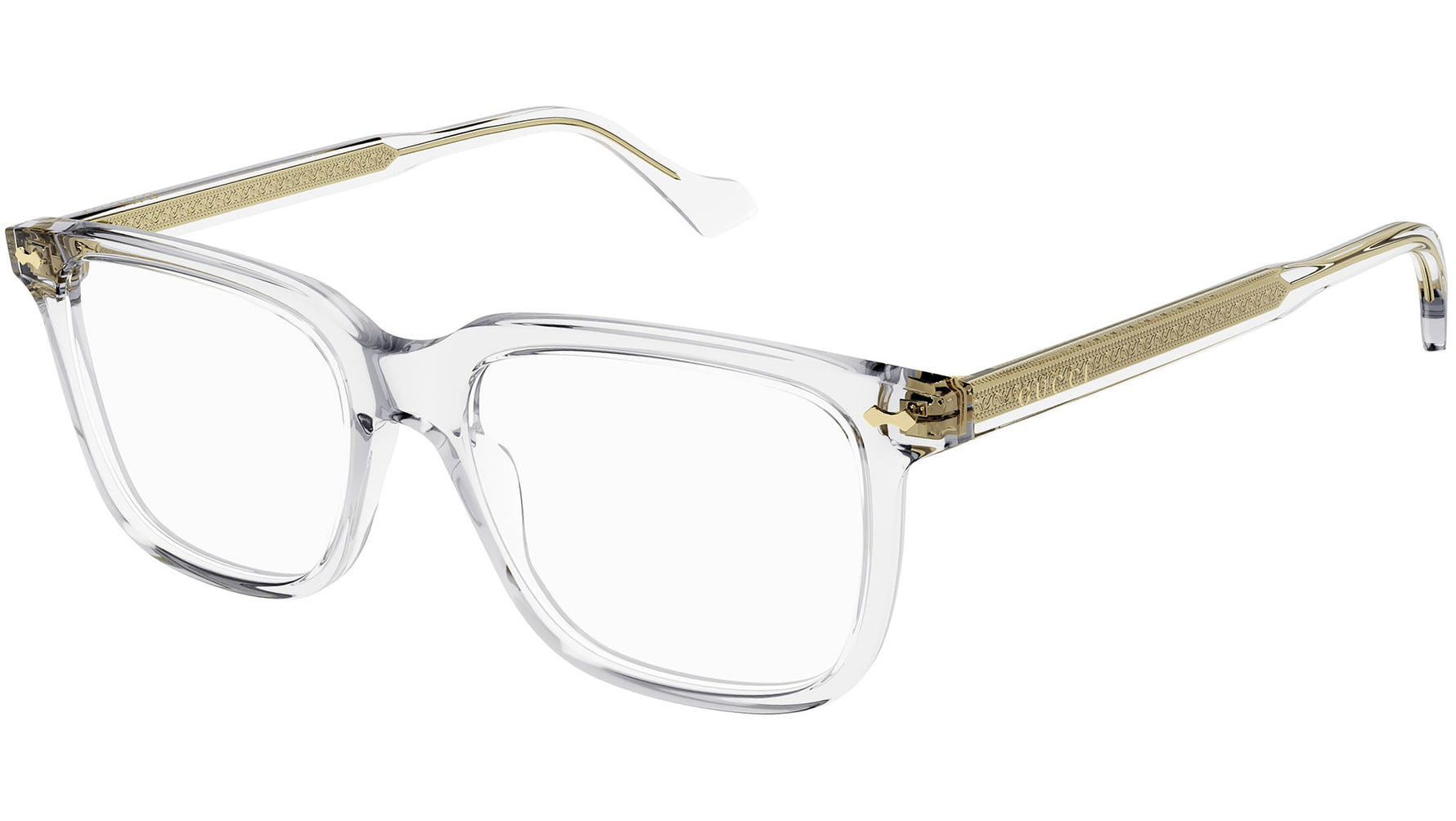 Occhiali da vista Gucci Logo modello GG0737O variante colore 017 cristallo lucido con astine color cristallo trasparente.