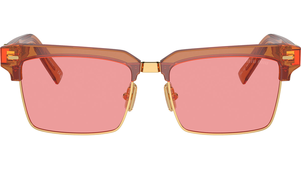Occhiali da sole Miu Miu modello 10ZS codice colore 15T1D0 con montatura in acetato color caramello trasparente e lenti in poliammide color rosa. Miu Miu offre creazioni uniche, in cui la costante ricerca stilistica si combina perfettamente con la maestria artigianale della lavorazione. Le silhouette femminili e sinuose delle montature sono espressione di una ricchezza dei dettagli che rispecchia pienamente i codici stilistici e l’indiscusso talento del brand nell’unire il design non convenzionale ad un romanticismo dai rimandi retrò. - Rivenditore autorizzato Miu Miu online. Il prodotto viene consegnato completo di confezione e accessori originali ed è coperto dalla garanzia globale del produttore di 12 mesi.