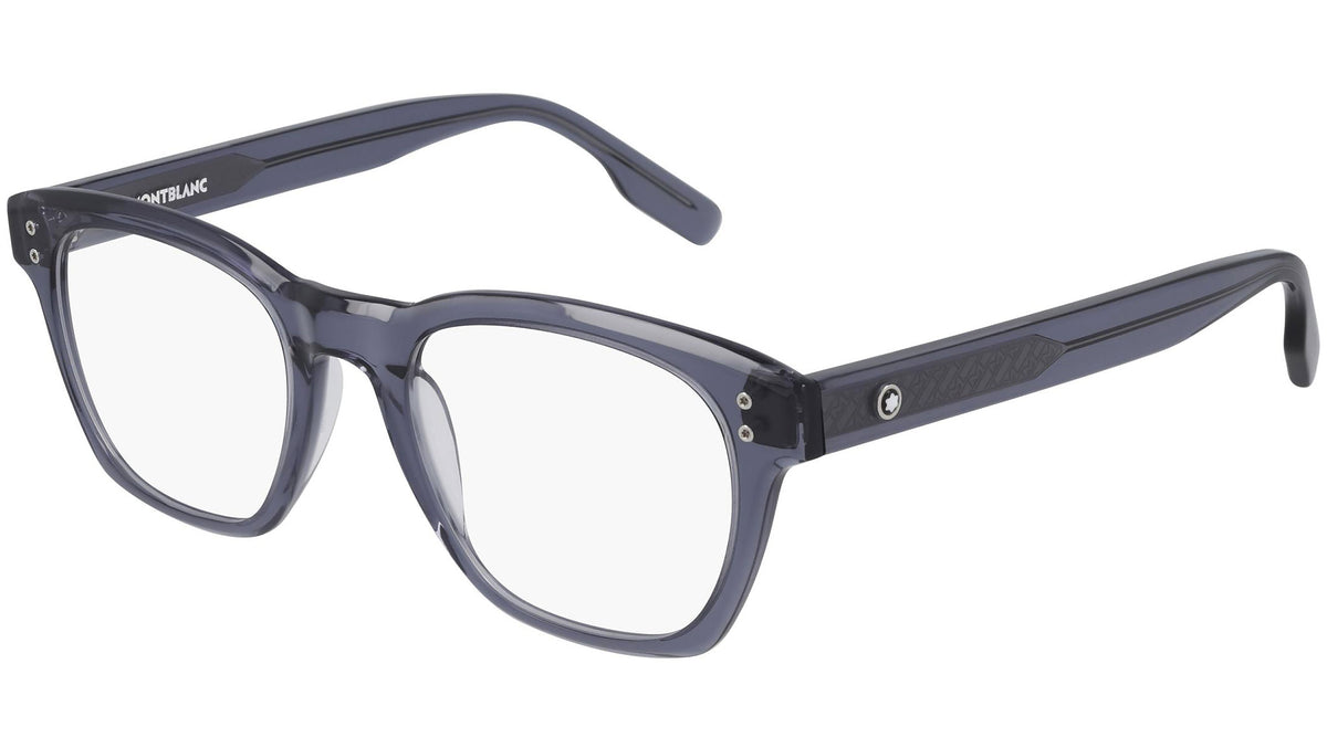 Occhiali da vista Montblanc linea Established modello MB0122O, variante colore 004 blu trasparente lucido con astine color blu. Montblanc coniuga artigianato all'avanguardia e raffinatezza, in una vasta gamma di occhiali da sole e da vista che esaltano i codici estetici della Maison, con un tocco contemporaneo. La selezione di occhiali da vista in particolare è stata progettata per massimo comfort.